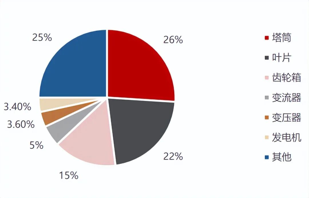 齿轮箱是双馈式与半直驱式风机关键部件,成本占比约 15%。齿轮箱位于风力涡轮机的底部,连接着风轮(叶片)和发电机,是风力发电机组中技术含量较高的部件之一,在风电机组总成本中占比约15%,仅次于塔筒和叶片。齿轮箱核心作用是将风轮叶片的旋转动力转化为高速旋转和适当的扭矩,以驱动发电机产生电能。齿轮箱通常由多个齿轮组成,通过精准的传动比例来提高风轮转速,并将其转化为适合发电机工作的转速。通常风轮的转速很低,远达不到发电机发电所要求的转速,必须通过齿轮箱齿轮副的增速作用来实现。